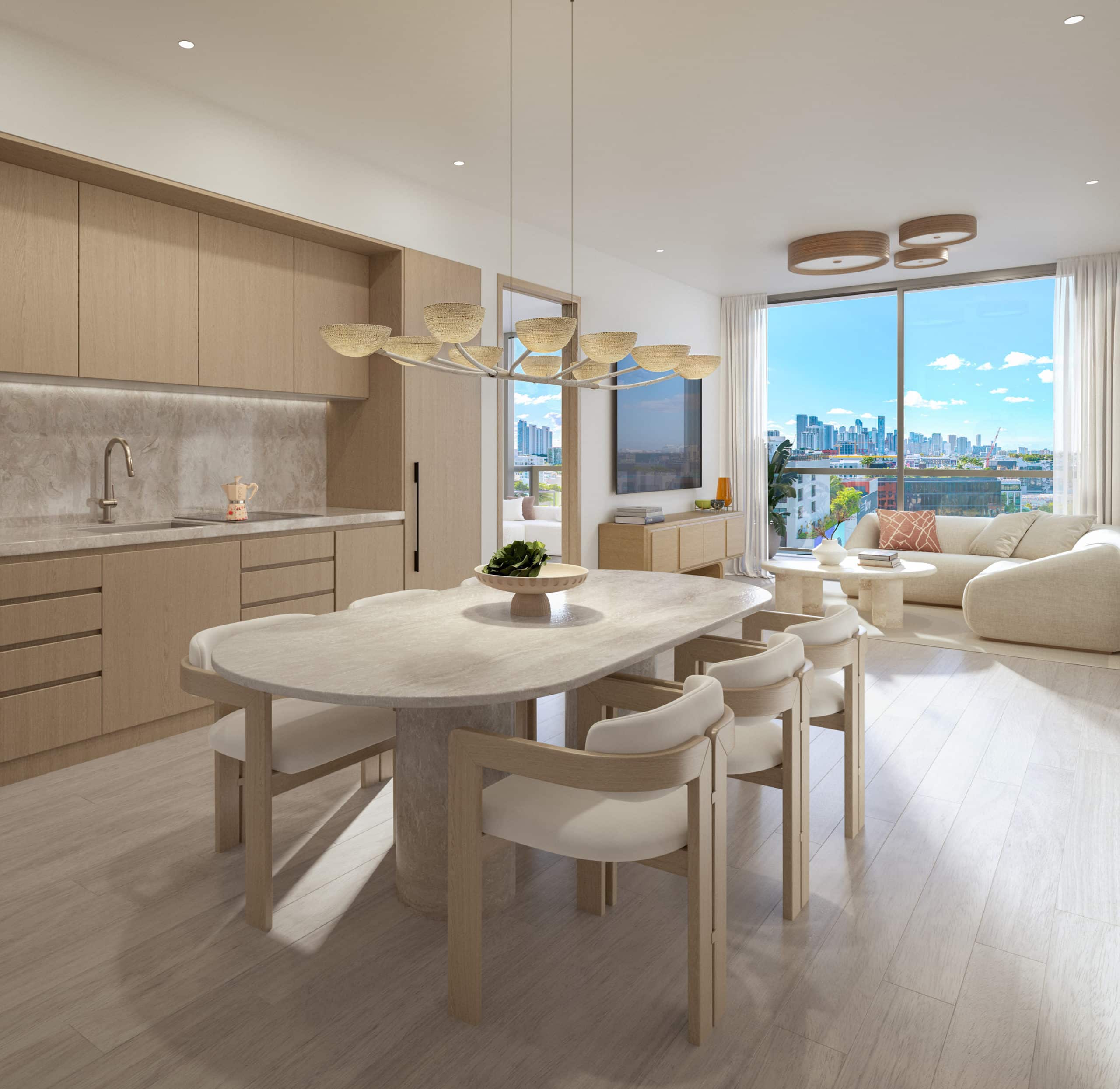 Por ubicación, está rodeado de galerías, gastronomía y vida cultural, con acceso cercano a Midtown y Design District. La entrega se ha mencionado para el rango 2028–2029, según anuncios y reportes del lanzamiento.